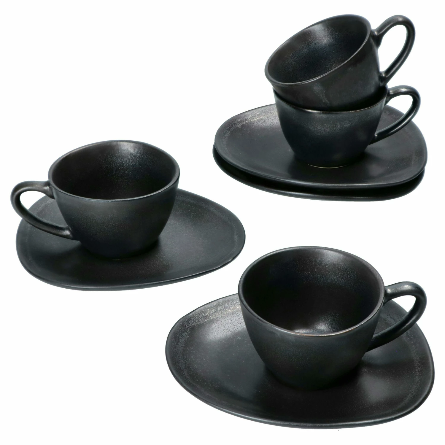 - Kaffeetassen-Set Manhattan Nero handgefertigt 4x Kaffeetasse 220 ml & 4x Untertasse
