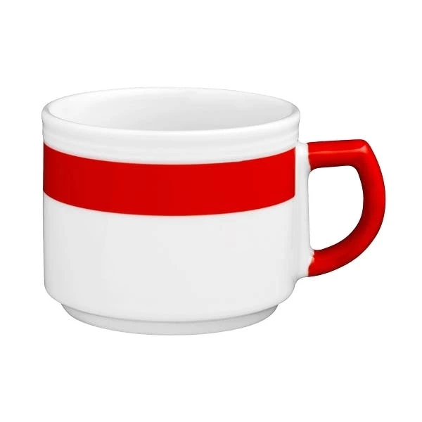6 X Seltmann Obertasse 1 0,18 L, Form: Vitalis, Dekor: 34193 Rotes Band