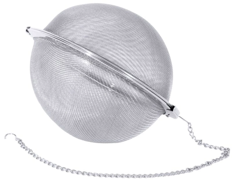 Gewürz-/Teesiebkugel, ganz aus Edelstahl 18/10, extra feines Filtergewebe, mit 15 cm langer Kette