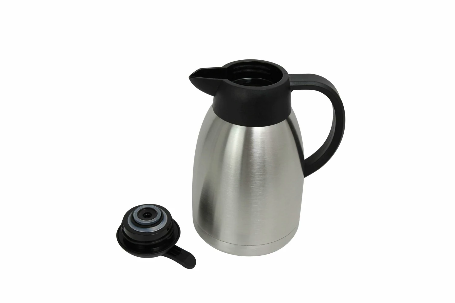 Die METRO Professional Isolierkanne (schwarz), aus Edelstahl, verfügt über ein Fassungsvermögen von einem Liter und einem Druckknopf. Das Produkt hält Getränke 12 h warm oder 24 h kalt und hat die folgende Maße: 17,5 x 13,5 x 21,5 cm. Zur Kennzeichnung sind zusätzlich 3 Tee-Aufkleber und 3 Kaffee-Aufkleber enthalten.