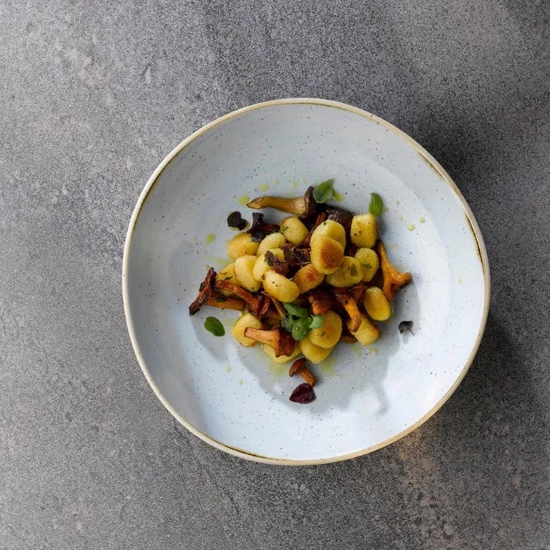Aus extrem starkem, supertrififiziertem Porzellan, das keine Feuchtigkeit absorbiert, ist hygienischer und resistenter gegen thermischen Schock. Die Sammlung ist vollständig mit ökologischem Ecoglaze verglast, was eine Schutzschicht erzeugt, die die Haltbarkeit gewährleistet und die Leistung während des intensiven Gebrauchs verbessert.