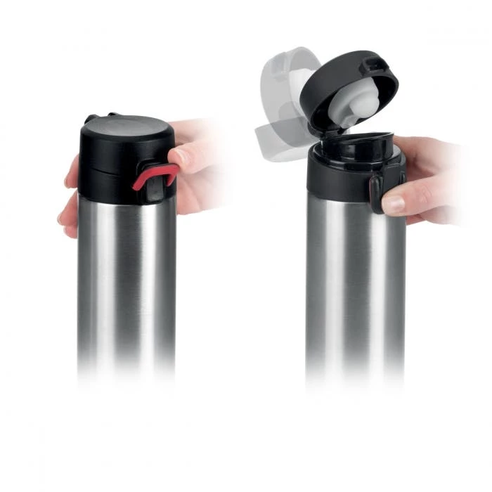 Die doppelwandige Vakuum-Isolierflasche aus erstklassigem rostfreiem Edelstahl hält die aufzubewahrenden Getränke heiß oder kalt. Mit dem Einhandverschluss und der Verriegelung gegen unbeabsichtigtes Öffnen beim Sporttreiben, unterwegs usw.