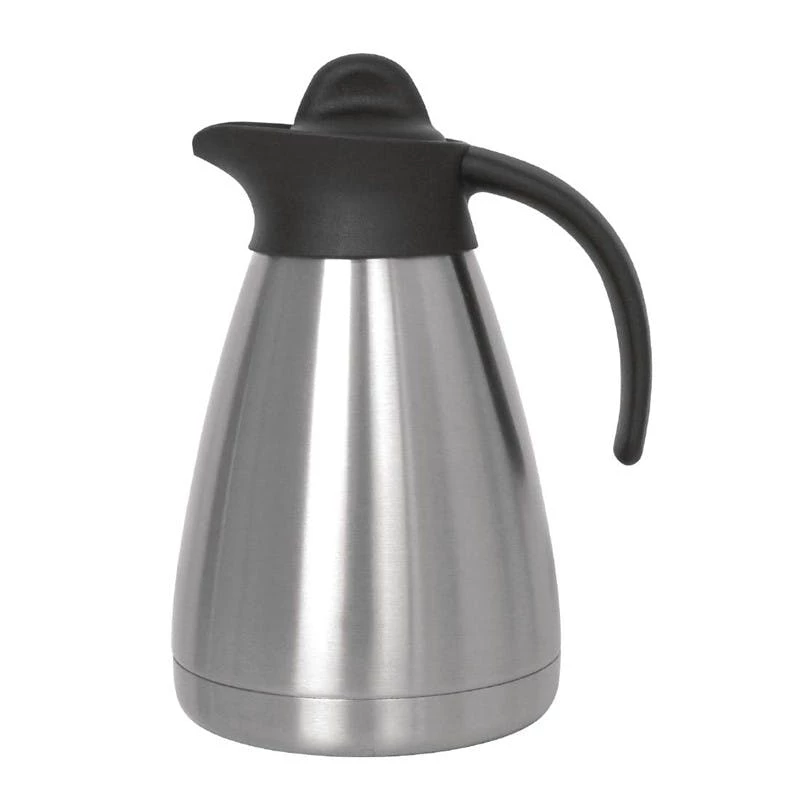 - Durch einen Klick-Druck in der Mitte öffnet und schließt der Verschluss der Kanne. Der Verschluss ist 100% dicht und ermöglicht ein spritz- und tropffreies Einschenken
